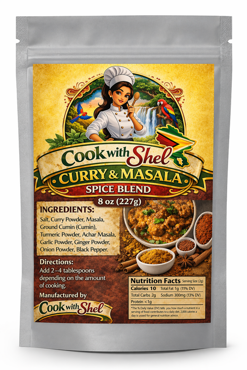 Authentic Guyanese curry and masala blend made with bold, rich spices. Perfect for chicken, seafood, vegetables, and more. Just add and cook—no extra mixing needed.